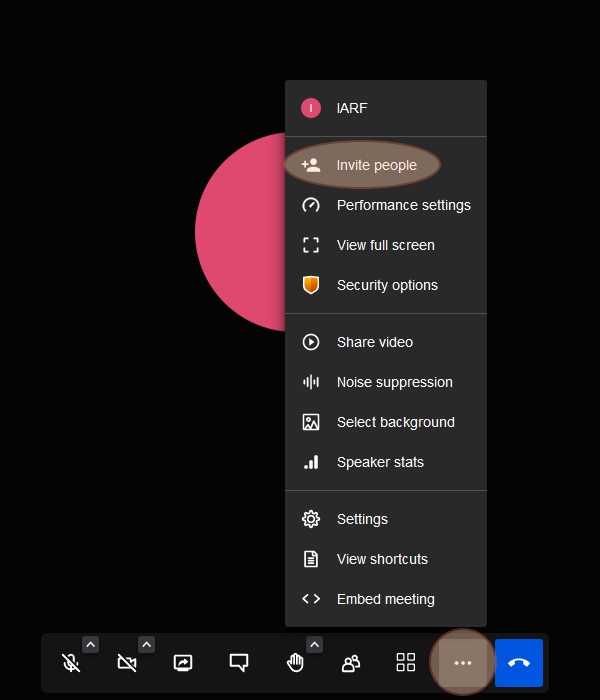 Select the three dots next to the blue button on the bar at the bottom of your screen, then select “Invite people” and copy the invitation link.