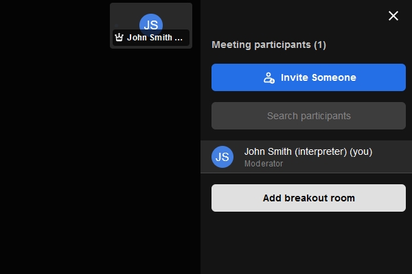 Your interpreter display name must include the word “interpreter”. For example, “John Smith (interpreter)”.